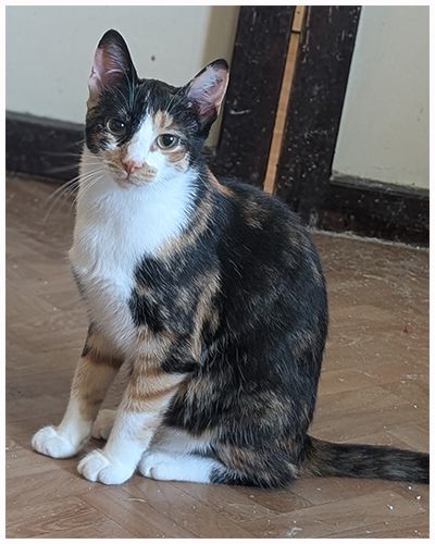 Cleo ist auf der Straße geboren und Menschen gegenüber äußerst misstrauisch, sie hing sehr an ihrer Mama und war auch die ganze Zeit mit ihr und später ihren kleinen Geschwistern zusammen. Nach der Kastration von Greta wollte diese aber weder von ihren kleinen Kitten, noch von ihrer großen Tochter mehr was wissen, so ist Cleo bei ihren Geschwistern geblieben und später auch mit anderen Kitten zusammen, die mit in die Gruppe kamen. Momentan ist nur noch der kleine schwarze Baghira übrig geblieben, an dem sie sehr hängt.